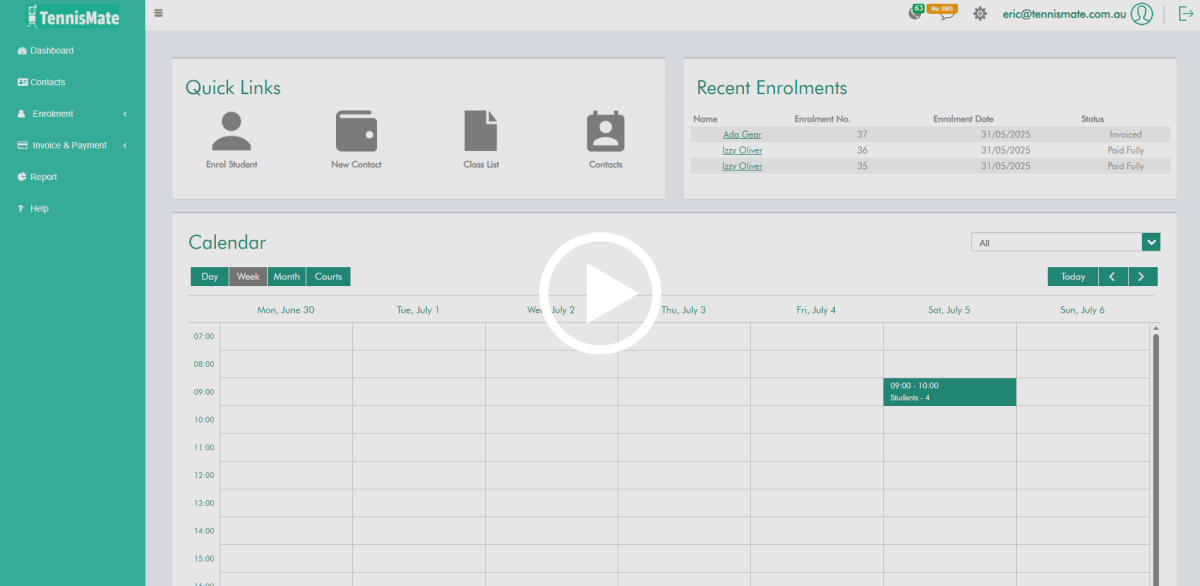 TennisMate.com.au takes care of all our tennis administration needs, allowing me to focus on what really matters, coaching! I set up my TennisMate account, linked it to my Stripe account, and was up and running immediately after emailing my students their new customer portal link. My entire tennis term was fully booked and paid for within the first week. We love TennisMate.com.au, thank you, Lee and the team for creating this simple to manage tennis coaching system!!!!